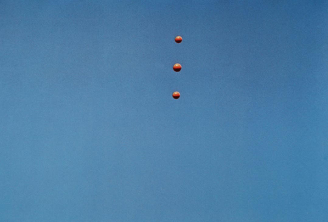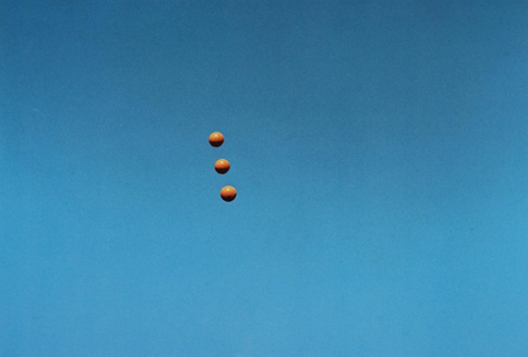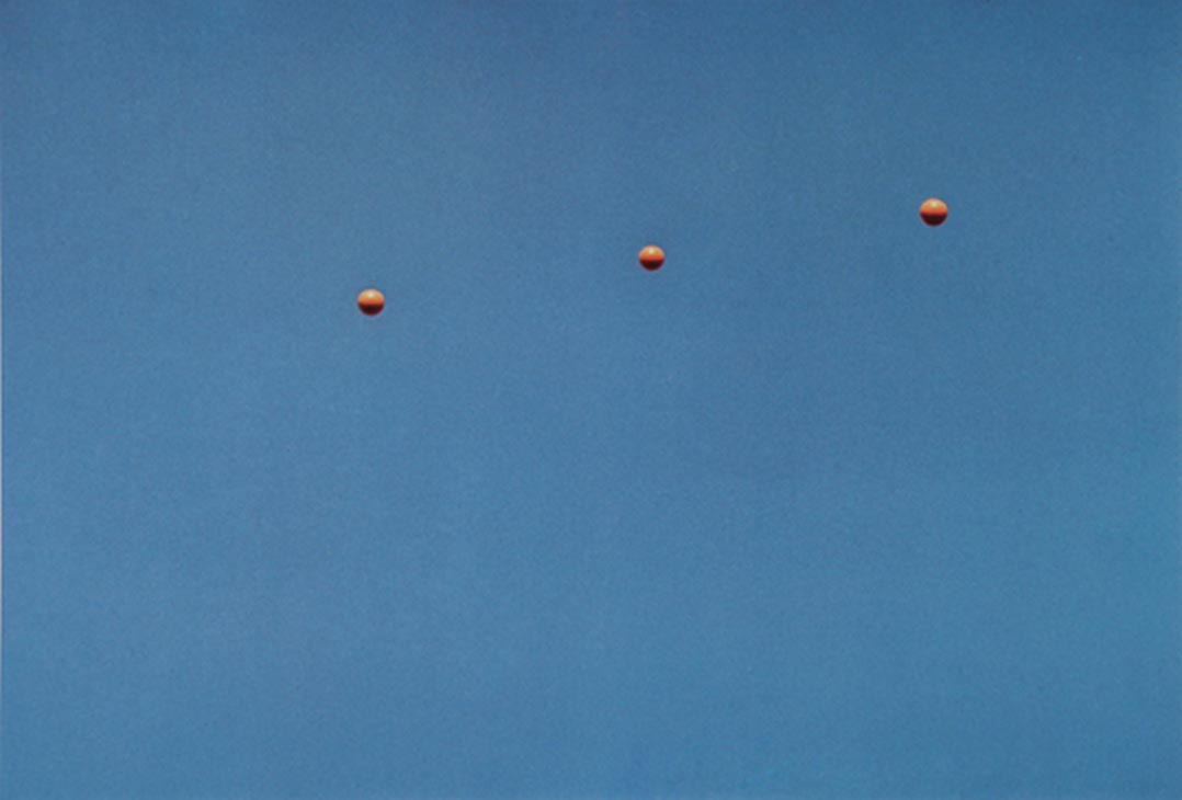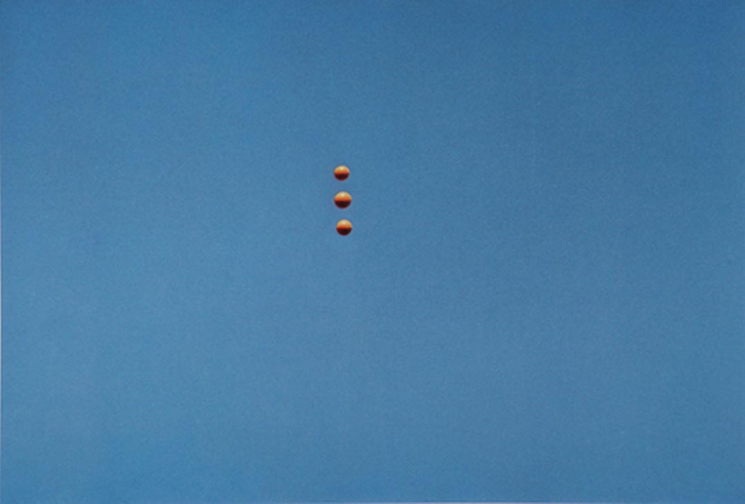 On a typically overcast summer's day in Manchester, I trawled the internet looking for something meaningful and came across high-resolution JPEGs of John Baldessari's Throwing Three Balls in the Air to Get a Straight Line (Best of Thirty-Six Attempts). Such was Baldessari's influence on my own work that the urge to realign his balls was irresistible. So with heavy grey clouds filling the sky outside my studio, I did just that.