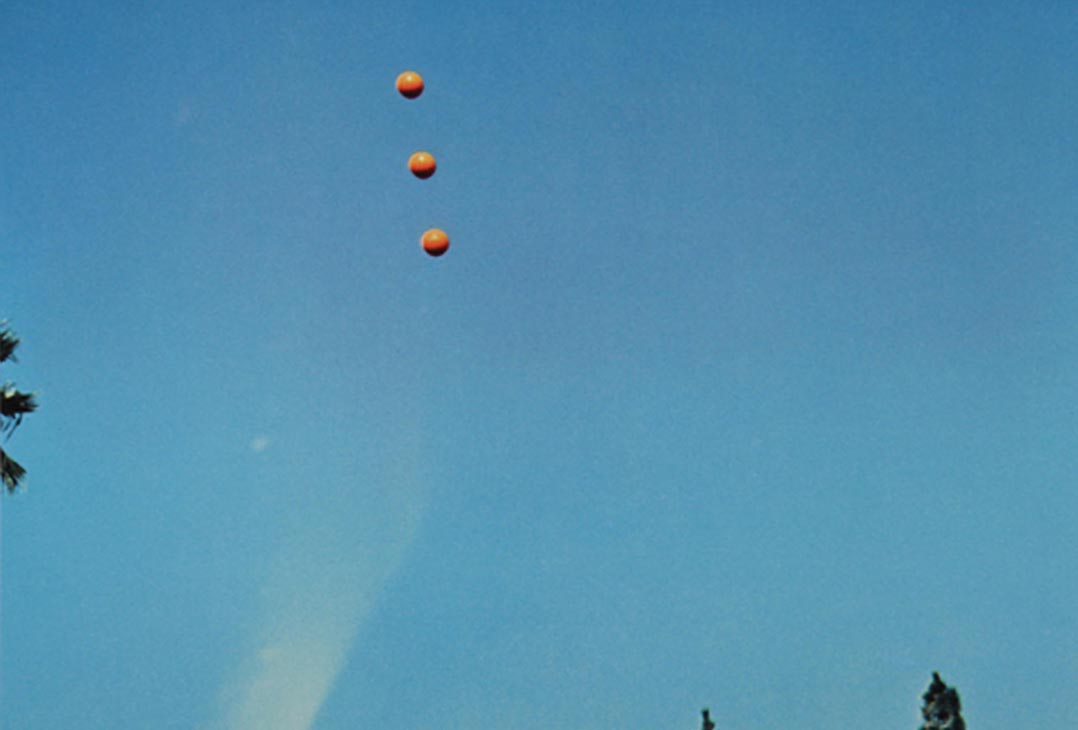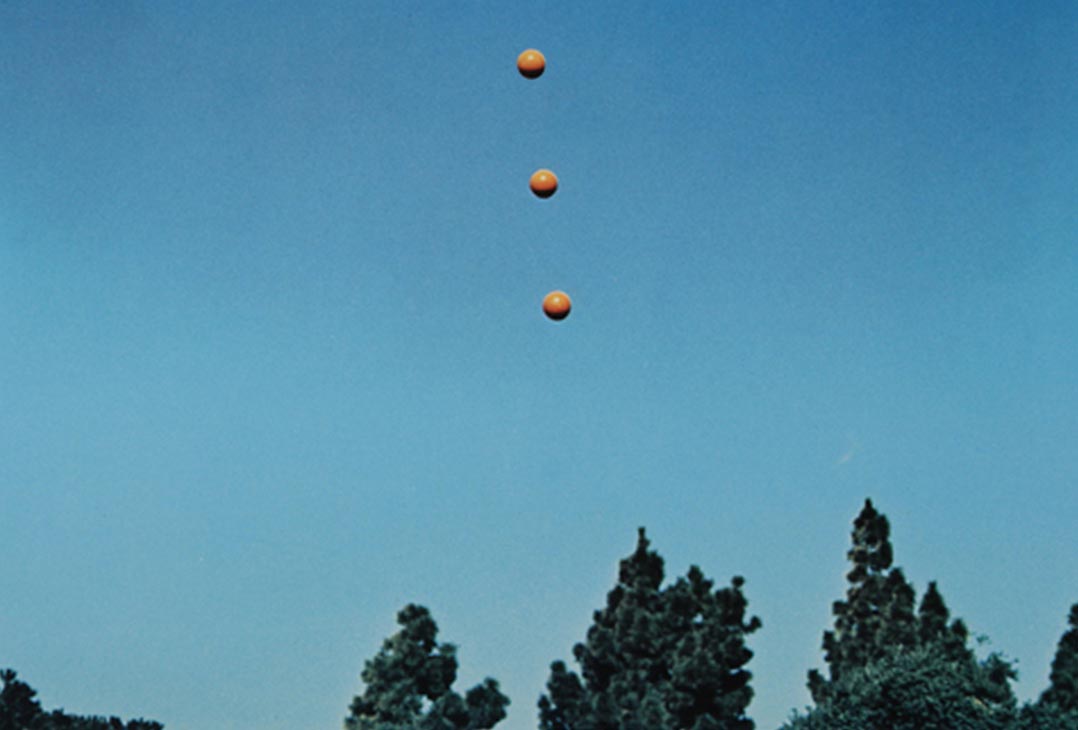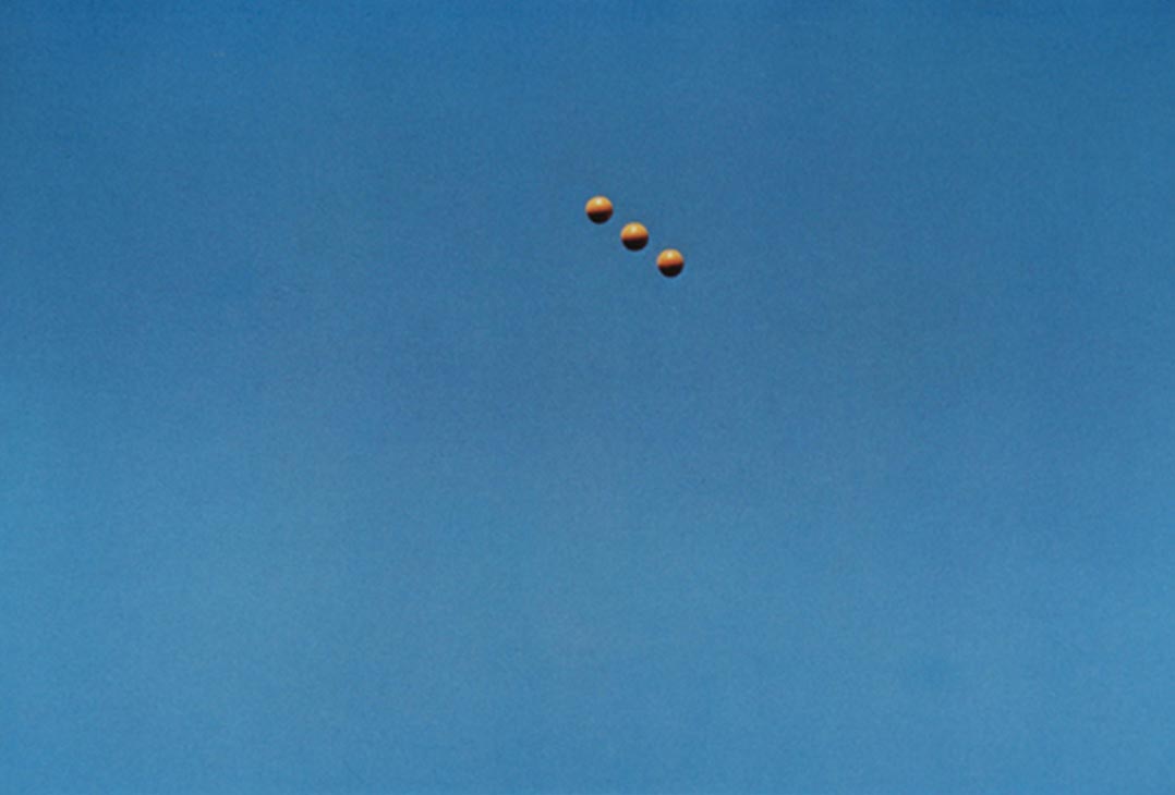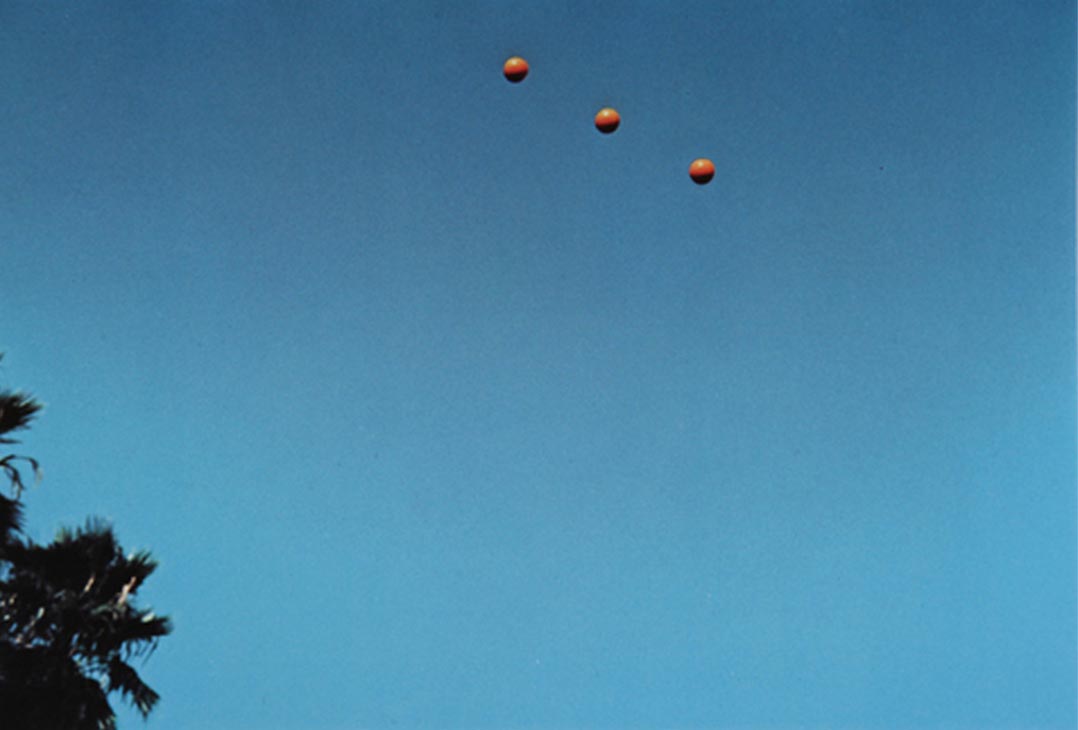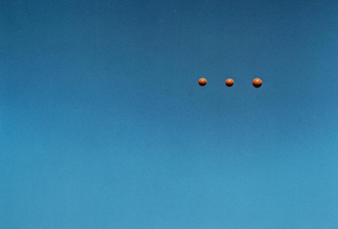 On a typically overcast summer's day in Manchester, I trawled the internet looking for something meaningful and came across high-resolution JPEGs of John Baldessari's Throwing Three Balls in the Air to Get a Straight Line (Best of Thirty-Six Attempts). Such was Baldessari's influence on my own work that the urge to realign his balls was irresistible. So with heavy grey clouds filling the sky outside my studio, I did just that.
