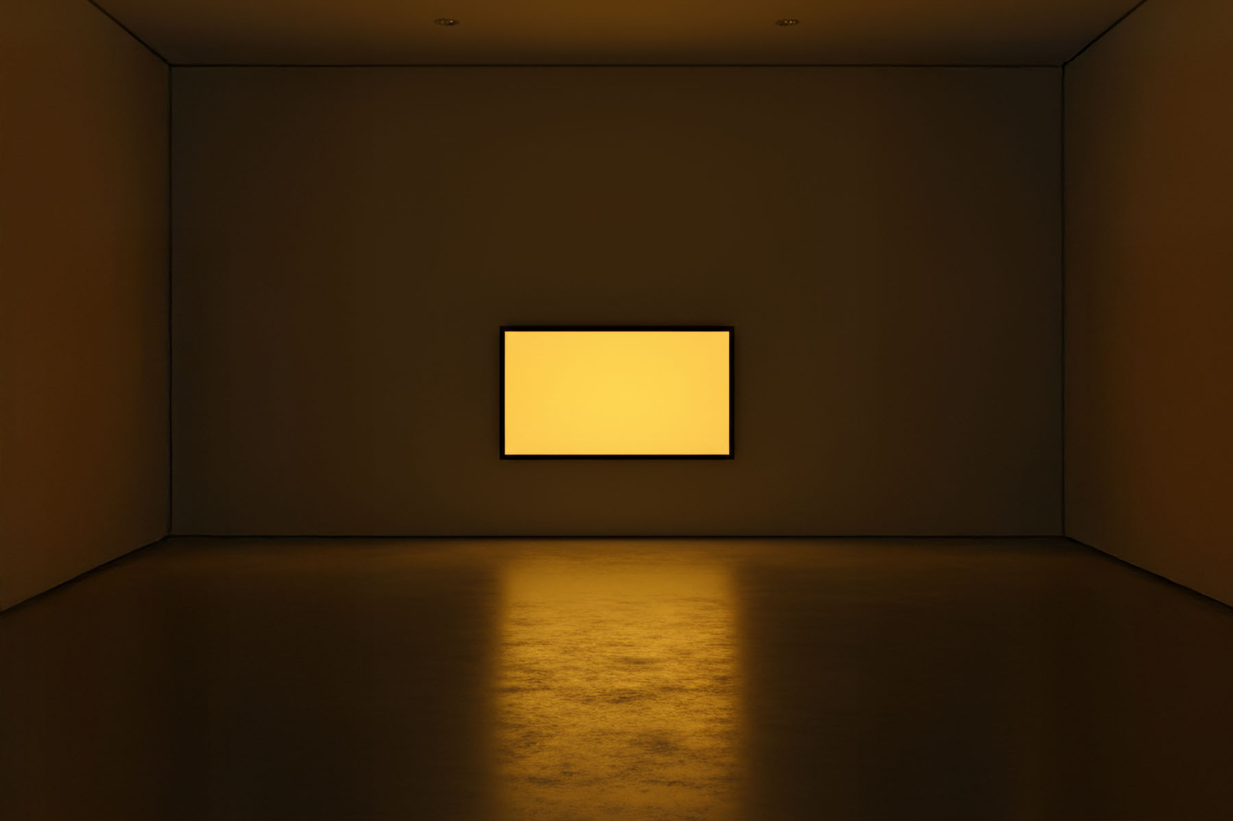 The Light centres on New Light, a single large screen that moves slowly and continuously through the full range of colours a digital display can produce. Like a contemporary stained-glass window, it bathes the room in shifting hues, transforming the space through colour alone. But whereas medieval stained glass channelled divine narratives, this work reveals the quiet theology of the present: the screens, interfaces, and devices through which we now understand the world. Here, the spectrum becomes a kind of scripture—an index of all the possible images that could appear on our glowing surfaces. By showing colour without content, New Light exposes the belief system embedded in the digital image: the idea that everything can be rendered, translated, and understood through light encoded as data. In this room, photography dissolves into its most elemental form, reminding us that behind every picture we trust lies a simple, programmable radiance.